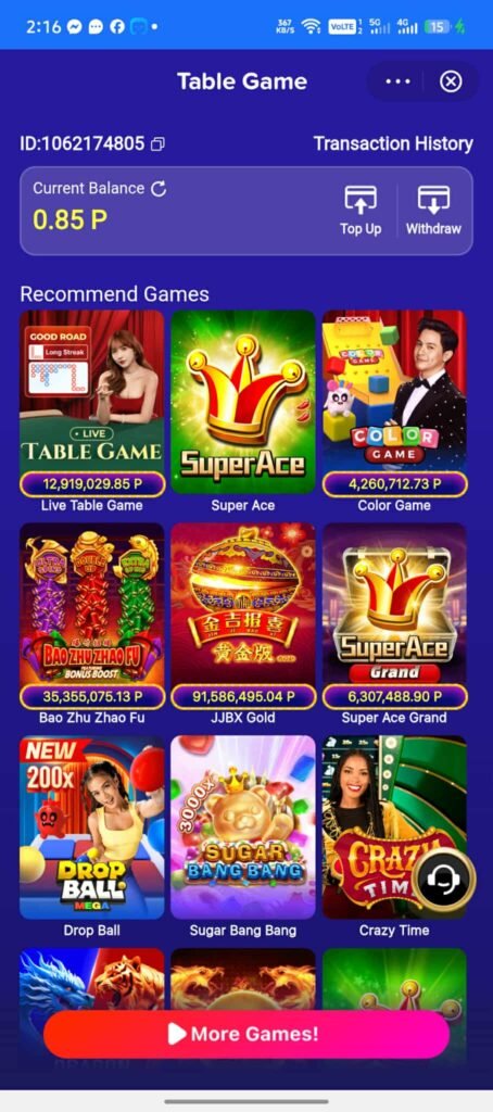 Table Game on GCash is a mini-app casino featuring slots, scatter symbols, card games, roulette, dice, and crash games.